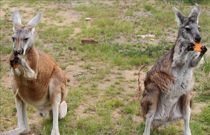習(xí)性:大赤袋鼠(又名紅大袋鼠)生活在草原地帶。集群,有時(shí)上百只,多夜間活動,無固定棲息地。白天休息時(shí)有“哨兵”警戒,遇危險(xiǎn)則發(fā)出咳聲并用后足擊地,一躍可達(dá)9米遠(yuǎn)。以青草、嫩芽、樹葉等為食。