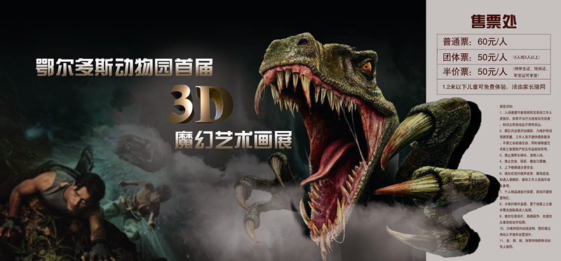 3D畫展是一種新穎的互動(dòng)性展覽,不僅可以看,還可以玩。進(jìn)入展區(qū),出現(xiàn)真人和畫面融為一體的奇特效果,這是一個(gè)老少皆宜的展覽,讓您真正體驗(yàn)到 “拉”大象鼻子、與長(zhǎng)頸鹿“親吻”,拿起魚竿釣兇猛的鱷魚,與偉人“握手”,與外星人 “交手”,牽著恐龍走,臥坐鯊魚嘴等等現(xiàn)實(shí)生活很難實(shí)現(xiàn)的猶如真實(shí)感受。3D魔幻藝術(shù)最大優(yōu)點(diǎn)在于面向大眾,追求最富有樂趣的互動(dòng)性,可以說是最有親和力的一種藝術(shù)展覽形式。無論是智力開發(fā)期的兒童、還是熱戀中情侶,亦或是家庭,都有不得不來的理由。只要半小時(shí)就可以玩到high!現(xiàn)在體驗(yàn),還可以享受“體驗(yàn)3D畫展送動(dòng)物園門票”的優(yōu)惠活動(dòng)。所以,不管你是從哪里來的朋友,只要來一次深刻的3D魔幻體驗(yàn),你就變成這里的主人。趕快行動(dòng)吧,不要忘了帶著您身邊的朋友。