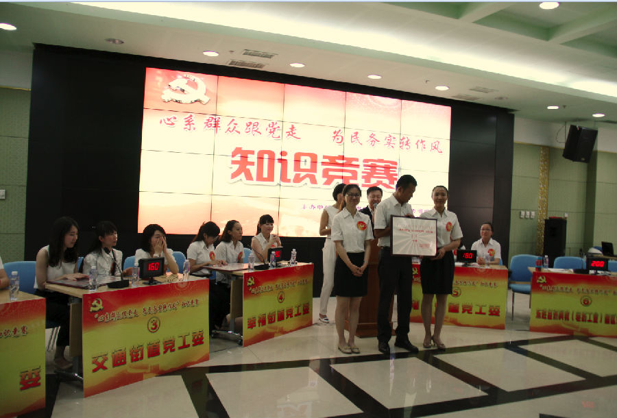 6月27日,動(dòng)物園黨支部王曉宇、陳靜、李雅麗3名參賽選手代表東勝經(jīng)濟(jì)科教(輕紡)工業(yè)園區(qū)黨工委參加?xùn)|勝區(qū)“心系群眾跟黨走,為民務(wù)實(shí)轉(zhuǎn)作風(fēng)”知識(shí)競(jìng)賽,經(jīng)過(guò)兩輪激烈的比賽,最終榮獲了知識(shí)競(jìng)賽第一名的好成績(jī)。