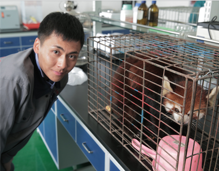 男主角跟自己的好搭檔合個影,小熊貓比獅子還兇殘。