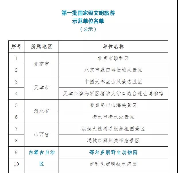 11月17日,全國旅游標(biāo)準(zhǔn)化技術(shù)委員會對第一批國家級文明旅游示范單位評定結(jié)果進(jìn)行公示,國家4A級旅游景區(qū)鄂爾多斯野生動物園成功入圍。