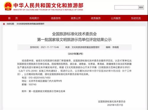 鄂野榮獲國家級文明旅游示范單位,感謝游客、社會各界人士以及評選單位對鄂野大力支持和充分肯定。