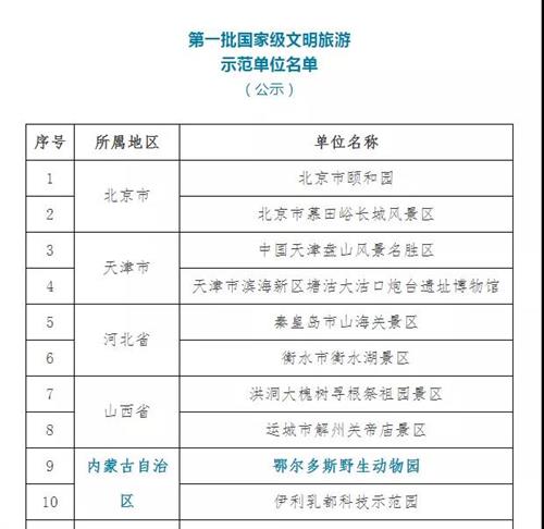 29日,文化和旅游部官網(wǎng)正式公布《全國旅游標(biāo)準(zhǔn)化技術(shù)委員會關(guān)于第一批國家級文明旅游示范單位的公告》,鄂爾多斯野生動物園成功入選。