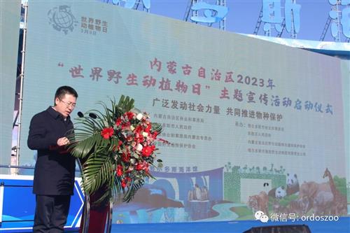 為進(jìn)一步推動(dòng)全民參與野生動(dòng)植物保護(hù),增強(qiáng)廣大群眾保護(hù)野生動(dòng)植物的意識(shí),建設(shè)美麗家園,內(nèi)蒙古自治區(qū)2023年“世界野生動(dòng)植物日”主題宣傳活動(dòng)啟動(dòng)儀式于3月3日由內(nèi)蒙古自治區(qū)林業(yè)和草原局、鄂爾多斯市人民政府、國家林業(yè)和草原局內(nèi)蒙古專員辦、中國野生動(dòng)物保護(hù)協(xié)會(huì)聯(lián)合主辦,由鄂爾多斯市林業(yè)和草原局、東勝區(qū)人民政府、內(nèi)蒙古自治區(qū)野生動(dòng)植物與濕地保護(hù)協(xié)會(huì)、鄂爾多斯市隆勝野生動(dòng)物園有限責(zé)任公司承辦,在鄂爾多斯野生動(dòng)物園舉行。