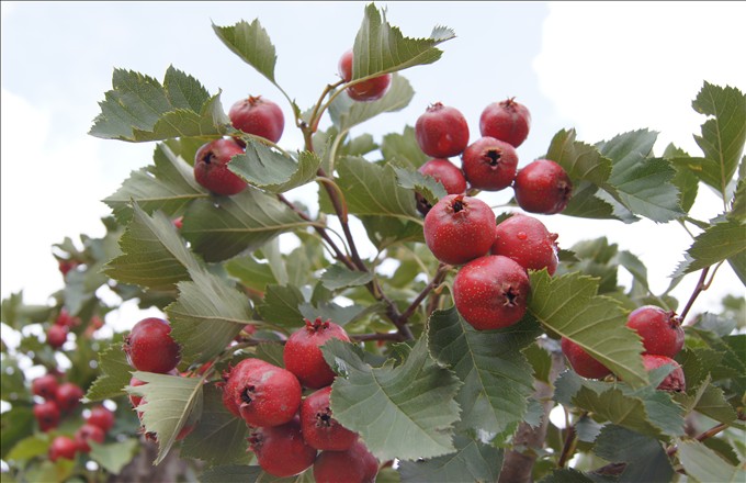 山楂樹(shù)為落葉喬木,葉子近于卵形,有羽狀深裂,花白色。果實(shí)球形,深紅色,有小斑點(diǎn),味酸,可以吃,也可入藥。其本適應(yīng)性強(qiáng),即是在山嶺薄地,生長(zhǎng)發(fā)育也比其他果樹(shù)為好。