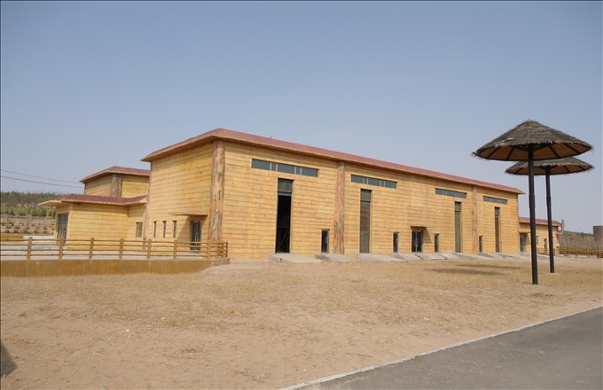 長頸鹿館:位于非洲區(qū)的靠南地,總建筑面積2444平方米,采用鋼筋混凝土框架結(jié)構(gòu),混凝土砌塊圍護(hù)墻體,仿非洲巖壁GRC外立面裝修。動(dòng)物圈舍一側(cè)與室外場地相通,一側(cè)設(shè)置落地安全玻璃與游客大廳相連,便于游客觀賞。室外沿動(dòng)物活動(dòng)場地設(shè)置通道供游人觀賞。
